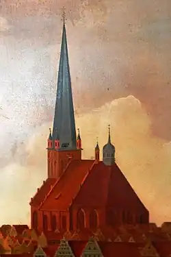 Ab 2007 wurden Umbauarbeiten durchgeführt, bei denen dem Kirchturm wieder ein Turmhelm aufgesetzt wurde.[3] Der neue Turmhelm hat ein anderes Aussehen als der 1944 zerstörte. Er ist dem ursprünglichen, 1677 zerstörten Turmhelm nachempfunden, wie er auf einer Stadtansicht von Paul Friedeborn aus dem Jahre 1624 dargestellt ist.[7] Der Turm hat eine Höhe von 110,18 m.[8] Auf dem Kirchturm wurde eine Aussichtsplattform eingerichtet, die seit Mai 2009 über zwei Fahrstühle erreichbar ist.[9]