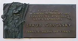 Gedenktafel auf Geburtshaus von Obrovský