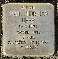 Jan Uher (28. Januar 1891 in Prostějov27. Oktober 1942 in Berlin-Plötzensee) war ein tschechoslowakischer Pädagoge, der an mehreren Schulen und Universitäten lehrte. Er schloss sich der Widerstandsgruppe Obrana národa an, wurde deswegen 1939 verhaftet und 1942 in Berlin-Plötzensee hingerichtet.