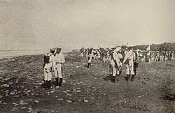 Japanische Armeeeinheiten machten sich danach daran, den Rest der Insel zu besetzen. In dieser Phase der Invasion trafen sie vorwiegend auf den Widerstand paramilitärischer Gruppen, die im Gegensatz zu den regulären Truppen der Republik Formosa vorwiegend aus Taiwanern bestanden.[26][27] Die Japaner bewegten sich südwärts von Taipeh aus in Richtung Hsinchu. Unterwegs kam es zu Gefechten mit formosanischen Verbänden, die sie jedoch jeweils rasch für sich entscheiden konnte.[28] Nach der Ankunft in Hsinchu machten sich die Japaner sofort an die Eroberung der Stadt. Obwohl diese von Wällen umgeben war und von einer zahlenmäßig weit überlegenen Garnison verteidigt wurde, konnten die Angreifer die Stadt innert kurzer Zeit und praktisch ohne Gewaltanwendung einnehmen. Als die Japaner die Mauern mithilfe von Leitern erklommen, brach unter den formosanischen Verteidigern Panik aus, sodass sie ihre Waffen und Uniformen ablegten und sich als Zivilisten ausgaben. Um den Nachschub nach Hsinchu zu sichern, entsandten die japanischen Besatzer der Stadt einen Teil ihrer Truppen zurück nach Taipeh. Die Formosaner nutzten diese Situation und griffen die Stadt am 24. Juni an, konnten sie jedoch nicht zurückerobern. Auch zwei weitere Angriffe in den folgenden Tagen blieben erfolglos.[29] In den Wochen danach versuchten die Formosaner mithilfe von Guerilla-Taktiken, die Japaner zu besiegen. Sie konnten kleine japanische Trupps, wie etwa Versorgungskonvois, aus dem Hinterhalt angreifen, indem sie sich als Zivilisten kleideten, um möglichst lange unerkannt zu bleiben. Wenn der Kampf vorbei war, zogen sie sich jeweils rasch zurück. Am 11. Juli scheiterte ein weiterer formosanischer Angriff auf Hsinchu.[30] Um diesen Angriffen Einhalt zu gebieten, schickten die Japaner am 12. Juli eine große Abteilung ihrer Armee aus Taipeh zum Dorf Long-Tampo (chin. 隆恩埔 Longenpu, im heutigen Sanxia), wo sie sich mit weiteren japanischen Verbänden traf. Long-Tampo sowie mehrere umliegende Dörfer wurden in den folgenden Tagen von den Japanern eingenommen. Diese Niederlagen konnten die Formosaner jedoch nicht zum Aufgeben bewegen. Sie überfielen weiterhin kleine japanische Verbände. Also fuhren auch die Japaner mit ihrer Taktik fort und eroberten weitere Dörfer in der Region um Hsinchu. In der Hoffnung, eine große Zahl formosanischer Kämpfer auf einmal ausschalten zu können, rückten sie von drei Seiten auf die Ortschaft Sankakeng zwischen Taipeh und Hsinchu vor. Sie eroberten auch dieses Dorf am 23. Juli, mussten jedoch einige Verluste hinnehmen. Bis Ende Juli nahmen die Japaner weitere Dörfer südlich von Taipeh ein, um den Überfällen auf ihre Truppen ein Ende zu setzen.[31] Nachdem das Gebiet um die Hauptstadt gesichert war, konnten sich die Japaner dem weiteren Vorstoß Richtung Süden widmen. Am 6. August verließen ca. 2000 japanische Soldaten Xinpu, nordwestlich von Hsinchu. Die Truppe teilte sich in drei Teile auf, um das Gebiet zwischen der Küste im Westen und dem taiwanischen Zentralgebirge im Osten möglichst flächendeckend erobern zu können. Die einzelnen Gruppen rückten nach Süden vor und nahmen jedes Dorf auf ihrem Weg ein. In den Hügeln von Senpitsu-San (chin. 尖筆山 Jianbishan) trafen sie wieder aufeinander, um die dortigen formosanischen Befestigungen zu stürmen. Obwohl die Formosaner durch das Gelände und ihre Befestigungen einen klaren Vorteil hatten, verließen sie ihre Posten am 9. August, als sich die Japaner den Mauern näherten. Die Formosaner wurden weiter nach Süden zurückgedrängt, bis sie sich in Miaoli verschanzen konnten, wo sie Verstärkungen aus dem Süden erhielten. Zwischen dem 10. und dem 13. August bauten die Japaner ihr Lager vor Miaoli auf, erhielten Nachschub aus dem Norden und eroberten mehrere formosanische Stellungen rund um die Stadt. Diese Aktionen müssen die Besatzung von Miaoli eingeschüchtert haben, denn als die Japaner am 14. August die Stadt betraten, waren die Verteidiger bereits weiter nach Süden geflohen.[32]