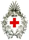 - ↑ Das Wappen zeigt das rote Kreuz, umschlossen von einem Kranz aus Bambus, Kaiser-Paulownie und ist gekrönt von einem Phönix.