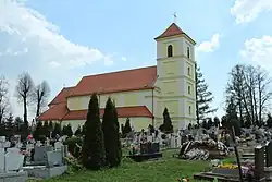 - Die römisch-katholische Martinskirche (poln. Kościół św. Marcina Biskupa) wurde 1725 erbaut. Bereits für 1290 ist eine Kirche an gleicher Stelle bezeugt. Nach einem Brand im Jahr 1764, wurde das Gebäude wieder aufgebaut. Das Gebäude besaß bis 1945 eine Glockenhaube auf dem Kirchturm, welche 1948 eingeschmolzen wurden. Seitdem besitzt das Gebäude lediglich ein Walmdach mit Kreuz.[8] Das Gebäude wurde 1950 unter Denkmalschutz gestellt.[9] 1973 wurde das Schloss unter Denkmalschutz gestellt.[10]