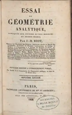 - Traité analytique des courbes et des surfaces du second degré (1802)