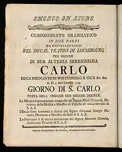 - Alceste (Stuttgart 1761 – Wien 1767)