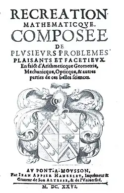 • Recreation mathematicque; composee de plusieurs problemes plaisants et facetieux; en faict d’arithmeticque geometrie, mechanicque, opticque, et autres parties de ces belles sciences, Pont-à-Mousson: Jean Appier Hanzelet, 1624