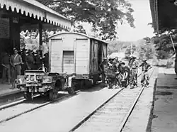 - ↑ Jeeptrain. The Mercury, Hobart, Tasmania, Monday, 3 September 1945.
