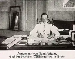 - ↑ Gothaisches Genealogisches Taschenbuch der Briefadeligen Häuser 1915. In: "Der Gotha" GGT. Briefadelige Häuser nach alphabetischer Ordnung. E. 9. Auflage. Egan-Krieger, Stammreihe. II. Linie. Justus Perthes, Gotha 1914, S. 216 (uni-duesseldorf.de [abgerufen am 13. März 2023]).