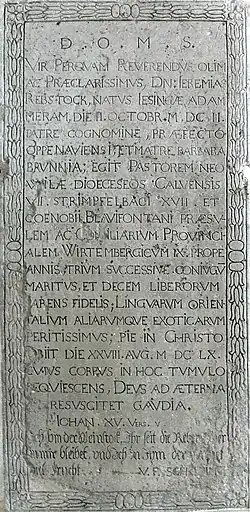 - ↑ Martinszellersche Familienstiftung: Jeremias Rebstock. ( des vom 5. Oktober 2015 im Internet Archive) Info: Der Archivlink wurde automatisch eingesetzt und noch nicht geprüft. Bitte prüfe Original- und Archivlink gemäß Anleitung und entferne dann diesen Hinweis. Abgerufen am 29. August 2009.