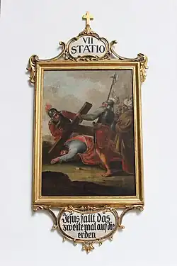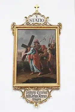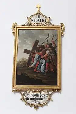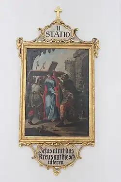 In den Seitenschiffen befindet sich ein Kreuzweg mit 14 Stationen, der mit der Verurteilung Jesu durch Pontius Pilatus beginnt und mit der Grablegung Jesu endet.