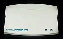 Für ältere oder sehr billige Drucker existiert eine Vielzahl von externen JetDirect-„Printservern“. Der Name wurde aus Marketing-Gesichtspunkten übernommen, obwohl die Anbindung an den Drucker nicht mehr so „direkt“ erfolgt. Stattdessen sind heute USB oder auch die ältere Parallelschnittstelle verbreitet. Externe JetDirect-Druckserver benötigen eine eigene Spannungsversorgung, meist durch ein Steckernetzteil.