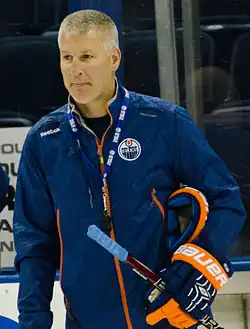 ![]() Johnson als Trainer der Edmonton Oilers (2015) | |