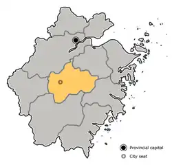 - Stadt Lanxi (兰溪市) Lánxī Shì, 1.312 km², 574.801 Einwohner;