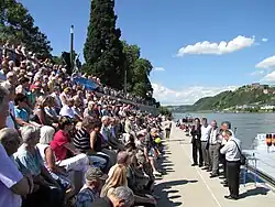 Einweihung der Schlossstufen vor dem Kurfürstlichen Schloss durch den Koblenzer Oberbürgermeister Joachim Hofmann-Göttig (stehend 3.v.l.) am 11. Juni 2010