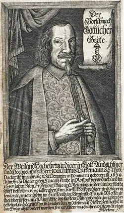 - ↑ Siehe dazu den Eintrag der Immatrikulation von Joachim Lütkemann im Rostocker Matrikelportal