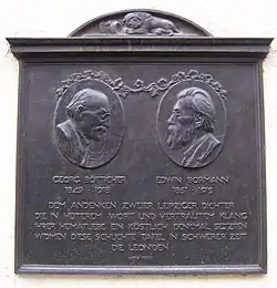Gedenktafel am Alten Rathaus in Leipzig, gestiftet vom Künstlerverein Die Leoniden, dessen Gründungsmitglied Georg Bötticher war.