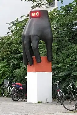 - 1975 Bronzeskulptur Hand mit Uhr, Berlin-Hansaviertel