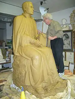 Joan Ferrés bei der Modellierung der Figur von Jacint Verdaguer in seinem Atelier in Olot 2007