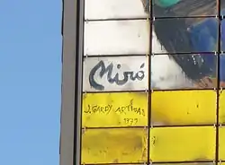 1969 richtete eine Gruppe junger spanischer Architekten in ihrem Verbandshaus in Barcelona eine Ausstellung mit dem Namen Miró otro aus. Sie protestierten damit gegen Francos Behörden, die sich des Malers bedienen wollten, aber auch gegen Designer und Plakatmaler, die Mirós Repertoire zu plündern und zu vulgarisieren begannen. Miró malte in der Nacht vor der Eröffnung aggressive Bilder auf die Fensterscheiben, um klarzustellen, dass er nicht käuflich sei, und wusch sie drei Tage später wieder ab. Louis Aragon widmete der Ausstellung des „anderen Miró“ eine Ausgabe der literarischen Zeitschrift Les Lettres françaises.[24]