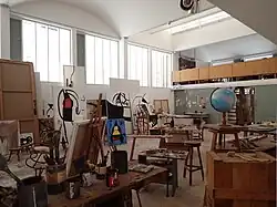 Den Bau einer neuen Werkstatt auf dem Gelände ließ Miró 1956 von dem Architekten Josep Lluís Sert, einem Freund des Künstlers, ausführen. Der Direktor der Harvard University Graduate School of Design galt als Wortführer der europäischen Avantgarde der Architektur. Sert schuf einen poetischen und funktionellen Raum, in dem Miró seinen künstlerischen Prozess zum Höhepunkt bringen konnte. Die Vorstellung von einer großen Werkstatt hatte Miró bereits im Jahr 1938 in dem autobiografischen Text „Ich träume von einem großen Atelier“[21] in der Zeitschrift Le XXe Siècle geäußert:[22]