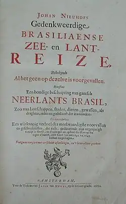 - Johan Nieuhof, Gedenkweerdige Brasiliaense Zee- en Lant-Reise und Zee- en Lant-Reize door verscheide Gewesten van Oostindien. Amsterdam: de Weduwe van Jacob van Meurs, 1682. Digitalisat