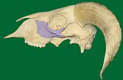 Das Jochbein, auch Wangenbein, Wangenknochen, Backenknochen oder Jugale, (lateinisch Os zygomaticum[1] oder Os jugale[2]) ist ein paariger Knochen des Gesichtsschädels am seitlichen Rand der Augenhöhlen. Das Jochbein leitet den Hauptkaudruck, der von den Molaren ausgeht, ab.