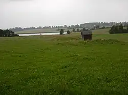 Johann-Friedricher Teich, Ansicht von Nordosten. Unter der Hütte im Vordergrund befindet sich die Striegelbedienung für den Oberen Fall.