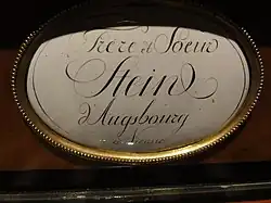 - ↑ […] Nun muß ich gleich beÿ die steinischen Piano forte anfangen […]; Salzburg, Internationale Stiftung Mozarteum: Brief Wolfgang Amadé Mozarts an seinen Vater. In: Mozart Briefe und Dokumente – Online-Edition, [1], Augsburg am 17. Oktober 1777.
