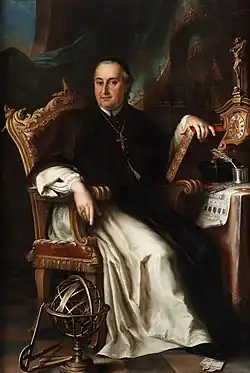 Johann Baptist Baader: Portrait des Hieronymiten Felice Nerini, vor dem ein Aufriss der Kirche Santi Bonifacio e Alessio in Rom liegt, datiert 1753