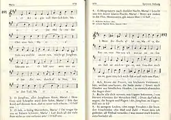 Kapitell vom Grabstein Benz, mit der Noten- und Textzeile aus dem "Salve Regina" - "o clemens, o pia, O dulcis Virgo Maria" Sie soll dem Lied im Speyerer Dom hinzugefügt worden sein u. Benz nahm sie als Grundmotiv einer seiner bekannten Mess-Kompositionen.