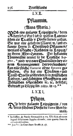 - ↑ Seite 82, De poetis germanicis von 1695 (latein.)