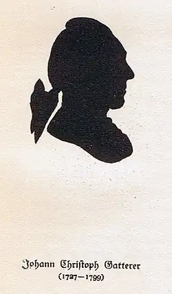 - ↑ Johann Christoph Gatterer, der Begründer der wissenschaftlichen Genealogie. bearbeitet von Wolfgang Ollrog. In: Archiv für Sippenforschung. Heft 81/82, 47. Jahrgang, Februar 1981, C. A. Starke Verlag, Limburg 1981, S. 4 f.