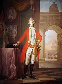 Im Jahre 1768 stellte Bernstorff Struensee, vermittelt durch den Grafen Schack Carl von Rantzau-Ascheberg und den Hofmarschall Conrad Holck, als Reisearzt für den König auf dessen einjähriger Europareise ein. Die Reise, die durch den Schatzmeister Heinrich Carl von Schimmelmann finanziert wurde, führte durch das Heilige Römische Reich, die Niederlande, England und Frankreich. In den Niederlanden besichtigte die Reisegesellschaft u. a. soziale Einrichtungen, Manufakturen und eine Herrnhuter Siedlung.[9] In Frankreich kam er in Kontakt mit Denis Diderot und anderen führenden Aufklärern. Während des Aufenthalts bei Christians Schwager Georg III. erlebte Struensee die Folgen der beginnenden Industrialisierung für die arme Bevölkerung wie Landflucht, Bildung von Slums und die daraus resultierende Zunahme sozialer Probleme und Krankheiten, besonders des Alkoholismus und der Syphilis. Zahlreiche seiner späteren Reformen wurden von diesen Erfahrungen geprägt.[10] In Oxford verlieh die medizinische Fakultät Struensee im Rahmen einer Feier dem König, Bernstorff, Holck und etlichen anderen Reisebegleiter die juristische Ehrendoktorwürde.[11]