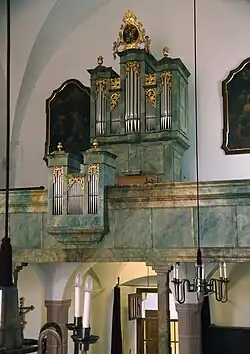 II/P | 16 | Hauptwerk und Pedal flankieren das Chorfenster, Positiv als Brüstungswerk; erhalten[2] | |