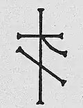 Das Steinmetzzeichen von Meister Haresleben ist auf dem Kaisersteinbrucher Ortsstein des Bildhauers Alexandru Ciutureanu eingemeißelt.