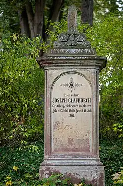 Joseph Glaubrech studierte ab 1817 Rechtswissenschaften an der Universität Gießen und schloss das Studium mit der Promotion zum Dr. jur. ab. Während seines Studiums wurde er 1819 Mitglied der Gießener Allgemeinen Burschenschaft Germania.[3] Nach dem Studium wurde er 1820 Polizeisekretär in Mainz. 1823 wurde er Advokat-Anwalt in Mainz und 1844 Ergänzungsrichter am Obergericht Mainz. Eine Untersuchung wegen Teilnahme am Preßverein wurde 1836 eingestellt, wie im Schwarzen Buch der Frankfurter Bundeszentralbehörde (Eintrag Nr. 529) festgehalten ist.[4] 1846 wurde er Obergerichtsrat in Mainz. 1848 war er Mitglied des Vorparlaments.[5]