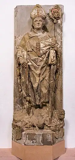 Wappen des Fürstbischofs an der Südwand des südlichen Seitenschiffes im Würzburger Dom. -
