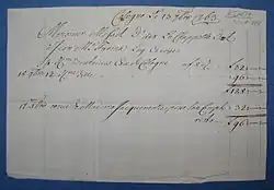 « Monsieur Peiffer d Bacharach me fait voir une de vous lettre par laquele vous luy demande six boutellie de Eau de Cologne. Cet ensi que on lapelle en France, mais en soie mesme cet de leau admirable, et je suis le seulle qui faie de la veritable … »