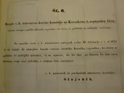 - ↑ Bojan-Ilija Schnabl. Landeseinteilungs-Erlass (2), Kärntner, vom 8. September 1854. In: Katja Sturm-Schnabl (Hrsg.), Bojan-Ilija Schnabl (Hrsg.): Enzyklopädie der slowenischen Kulturgeschichte in Kärnten/Koroška: von den Anfängen bis 1942. Böhlau, Wien / Köln / Weimar 2016, Bd. 2, j-Pl, S. 764–766, ilustr. [COBISS.SI-ID 22131464]