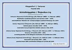 - ↑ Bojan-Ilija Schnabl: Johann Nepomuk Baron Schloissnigg (Šlojsnik), Statthalter von Kärnten (1850–1860) und Landespräsident von Krain. In: Carinthia I, Klagenfurt am Wörthersee 2017, 207. Jahrgang, S. 339–365.