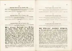 - ↑ "Kaiserliches Patent vom 30. Dezember 1849 wodurch die Landesverfassung für das Herzogthum Kärnten samt der dazugehörigen Landtags-Wahlordnung erlassen und verkündet wird", RGBl. vom 8. Jänner 1850 (Kärntner Landesverfassung, 1849, Artikel 3)