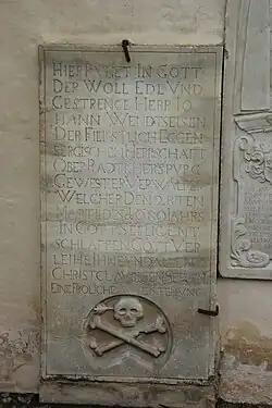 - ↑ a b c Grabstein des Hexenrichters Johann Wendtseisen (gestorben 1689). In: uni-klu.ac.at. Archiviert vom (nicht mehr online verfügbar); abgerufen am 9. August 2021.