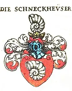 - ↑ Rolf Gürich: Die mährisch-schlesische Adelsfamilie von Schneckenhaus: Grundherren von Badewitz und Neudorf bei Leobschütz im Herzogtum Troppau - Jägerndorf. Ergebnisse einer Spurensuche (bzw. Ergänzungen zur Chronik 2016). Selbstverlag, 2021.