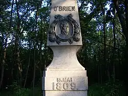 Ihm zu Ehren entstand das O’Brien-Denkmal, ein von A. Weinguni geschaffener rund fünf Meter hoher Obelisk mit Reichsapfel, auf dem sich ein stehender Adler mit ausgebreiteten Schwingen befindet (enthüllt am 17. Juni 1909; 1932 und 1959 renoviert). Nach ihm ist auch die O’Brien-Gasse im 21. Wiener Gemeindebezirk Floridsdorf benannt (benannt am 27. Juni 1913), beides in der Nähe des einstigen Kampfplatzes. Auch das Hesser-Denkmal des Infanterieregiments Nr. 49 am Gürtel beim Wiener Westbahnhof hält diese Waffentat fest.