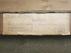 Amsterdamer Atelier-Klebeetikett von Johannes Antonius Bakkers, nachgewiesen aus den 1940er/-50er Jahren