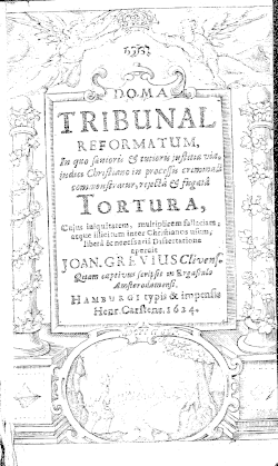- Tribunal reformatum, in quo sanioris et tutioris justitiae via judici christiano in processu criminali commonstratur, reiecta et fugata Tortura, cuius iniquitatem, multiplicem fallaciam atque illicitum inter Christianos usum libera et necessaria dissertatione aperuit Joh. Grevius, Clivensis, quam captivus scripsit in ergastulo Amsterdamensi: ob raritatem, elegantiam et varium usum recusa, accurante J. G. Pertsch, JCto, Guelpherbyti. 1622, 1737 (Ausgabe Hamburg 1624: VD17 1:012134Z)