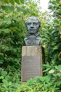 Er war ein Vorkämpfer für das tolerante Christentum und machte sich verdient als „Wegbereiter der Burscheider Volksbildung“. Im Jahr 1803 gründete er eine Lesegesellschaft, in der Bücher und Zeitungen gelesen und vorgelesen wurden. In Burscheid ist eine Straße nach ihm benannt, an der eine Bronzestatue an ihn erinnert. Auch ein Gymnasium, das 1960 geschlossen wurde, trug seinen Namen. Seit Sommer 2014 trägt die Johannes-Löh Gesamtschule in Burscheid seinen Namen.[2]