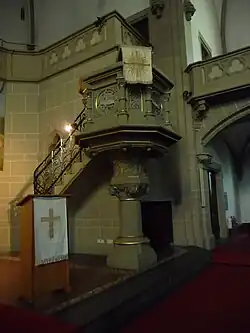 Die Kirche orientiert sich in ihrem Stil an der burgundischen Frühgotik, ist aber im Gegensatz zu gotischen Kirchen als Zentralbau ausgeführt. Der Grundriss basiert auf einem griechischen Kreuz, wobei der südliche Arm (hinter dem Altar) als Konfirmandensaal abgetrennt ist. Die Kirche steht frei an einer Straßengabelung, so ist die Fassade nach drei Seiten hin wirkungsvoll gestaltet. Über dem Haupteingang im Norden ragt der markante, 55 m hohe Turm auf.