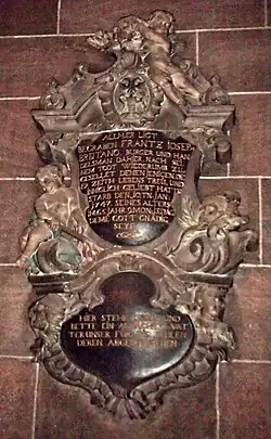 - ↑ Johann Franz Capellini von Wickenburg: Thesaurus Palatinus. Band 2, listet zahlreiche, inzwischen verlorene Epitaphinschriften aus der Kirche auf. Eine davon ist die des Domscholasters Johann Lothar von der Hauben (1655–1723).
