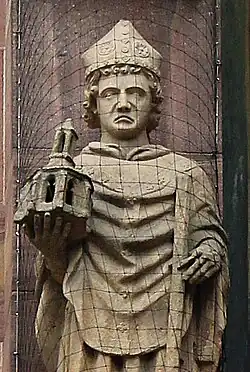 Eine gotische Bischofsfigur an der Außenwand der Nikolauskapelle mit einem – allerdings achteckigen – Zentralbau wurde auf St. Johannis bezogen. Sie sollte Burchard oder einen seiner Nachfolger als vermeintlichen Stifter darstellen.