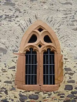 Außen gliedert ein Gesimsband den massiv aufgemauerten Turmschaft, dem vier dreieckige Steingiebel aufgesetzt sind. Das Gesimsband wird an der Westseite von einer gefasten spitzbogigen Öffnung unterbrochen, die früher vom südlichen Seitenschiff her den Zugang zum Turmobergeschoss ermöglichte. Im Erdgeschoss war die Turmhalle nur durch das spitzbogige Nordportal mit Chor verbunden und nicht von außen zugänglich. Im Obergeschoss der Nordseite ist im Mörtel ein schräger Abschluss von dem ursprünglichen Chordach erkennbar. Darüber weist der dreieckige Abdruck im Mörtel auf einen querschiffartigen Anbau zwischen Chor und Turm. Der fünfte Eckquader in der Südseite trägt das Baujahr 1491: „Anno dm m° ccc° xci“.[13]